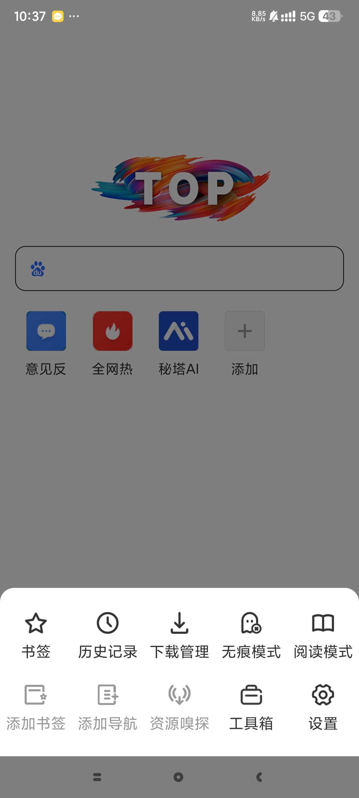 【应 用介绍】: Top浏览器是一款无广告、无推送、 无新闻的极简安卓浏览器,原创订阅功能实现追小说、影视、漫画,支持JS 脚本功能, 兼容油猴脚本,让浏览器功能更强大。