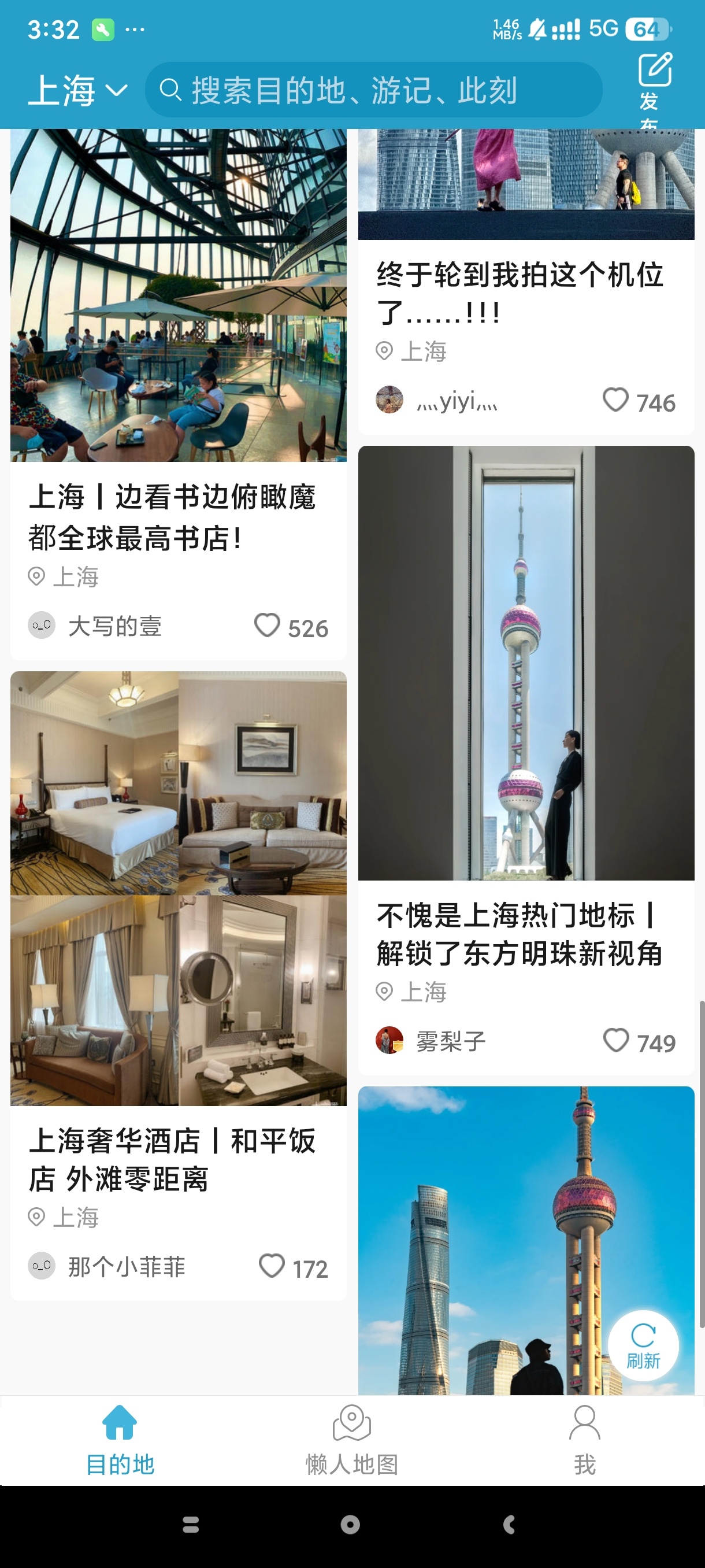 地图上的卡片,点开就是旅行者们为此提供的攻略或者美照