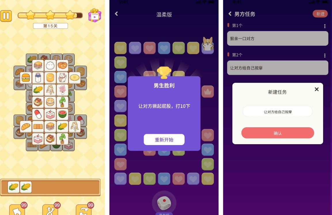 特色情侣游戏:喵了个喵、情侣飞行棋(可自定义惩罚任务)