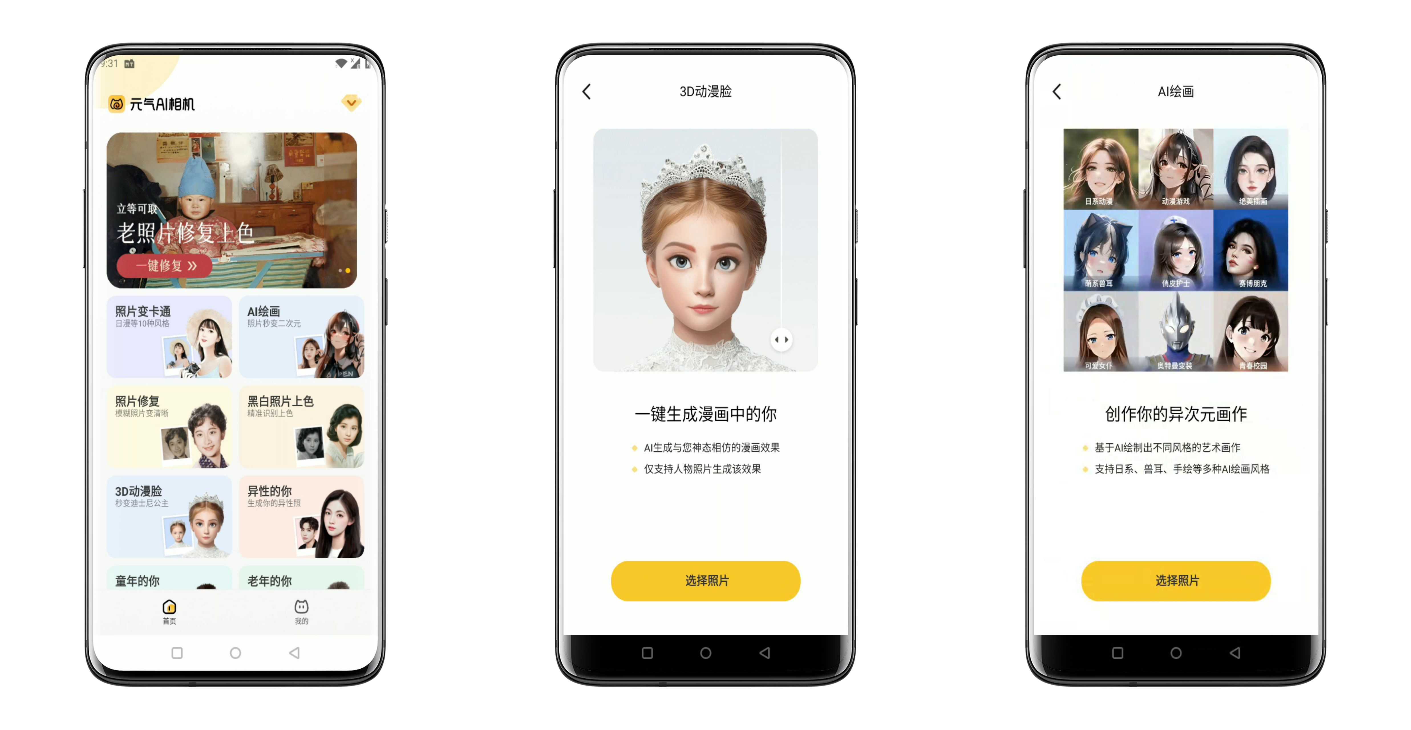 是基于AI算法的智能图像处理APP,可帮助你修复老照片破损,智能上色并大幅提升照片清晰度,;可一键分析脸型,实现换卡通脸、3D动漫脸异性脸、预测童年照、老年照等多种高级图片效果。(会员版无视显示直接用)有时候显示账户异常用不了就退出APP重新进就好