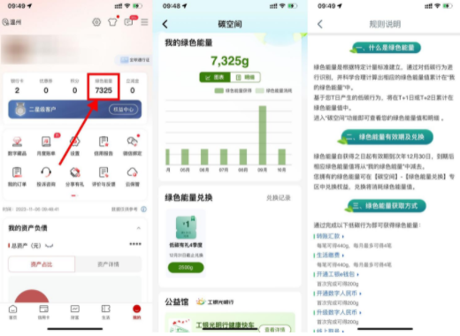 工行APP->我的->绿色能量->根据规则说明完成低碳行为得绿色能量(完成后3个工作日内自动到)->累计能量兑换1~10元微信立减金