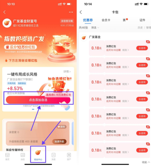 支付宝APP扫码->底部“粉丝中心”->挨个加入自选然后领多个消费红包,红包可叠加使用