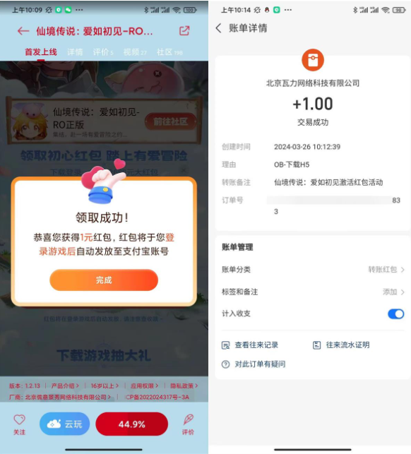 小米游戏中心APP搜索“仙境传说”->直接领1亓红包,随便登一下游戏就到了