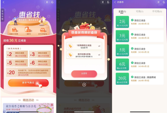 建行APP搜索“惠省钱”->部分人会弹出折扣券->抽取购买价格(大于8亓建议别买)->购买后在微信卡包中查看