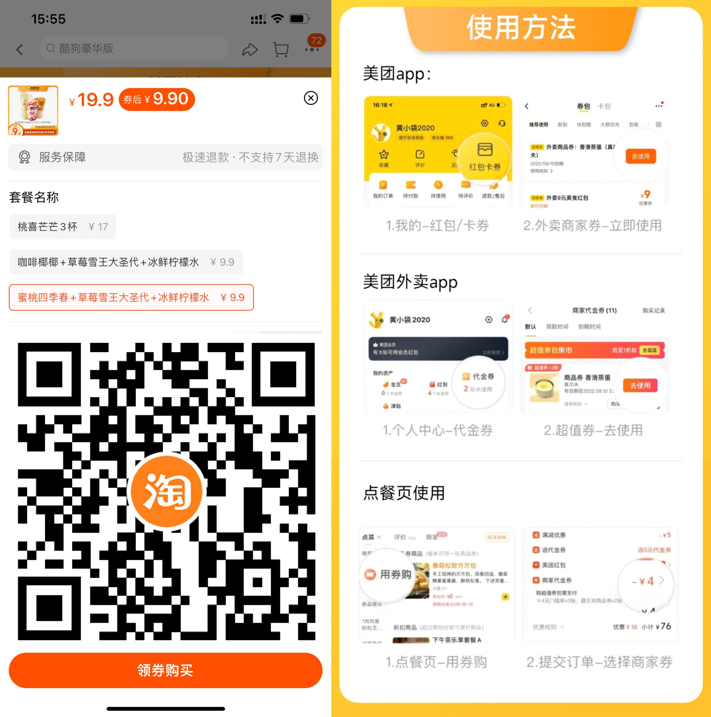 券是全国通用的!3件套包含:蜜桃四季春+草莓雪王大圣代+冰鲜柠檬水,下单后根据提示到美团APP兑换即可