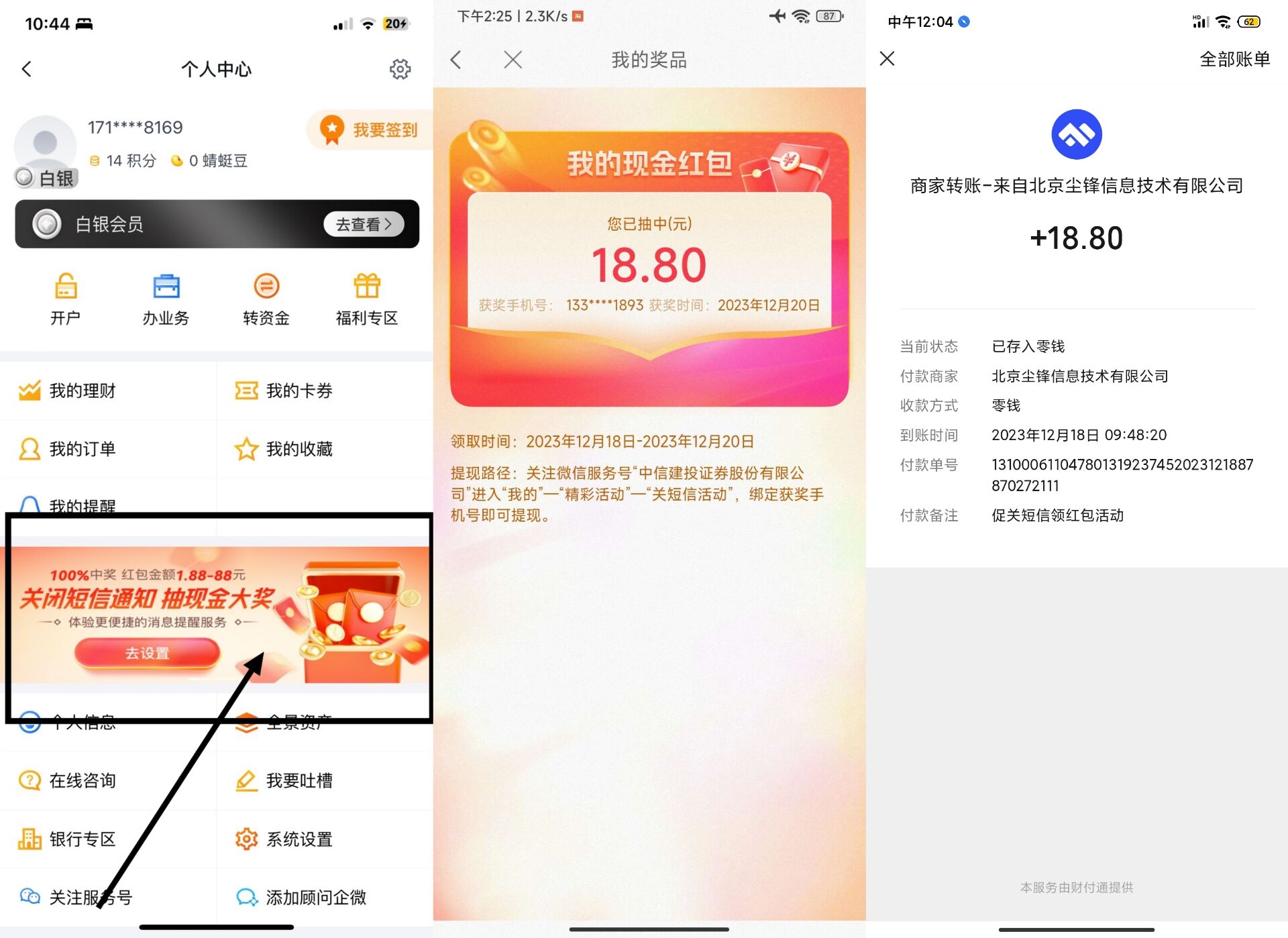 应用商店下载“蜻蜓点金”->我的->“关闭短信通知 抽现金大奖”->点击进入->关闭一下短信->抽红包即可->部分用户秒到->不到找客服问一下->亲测18.88元
