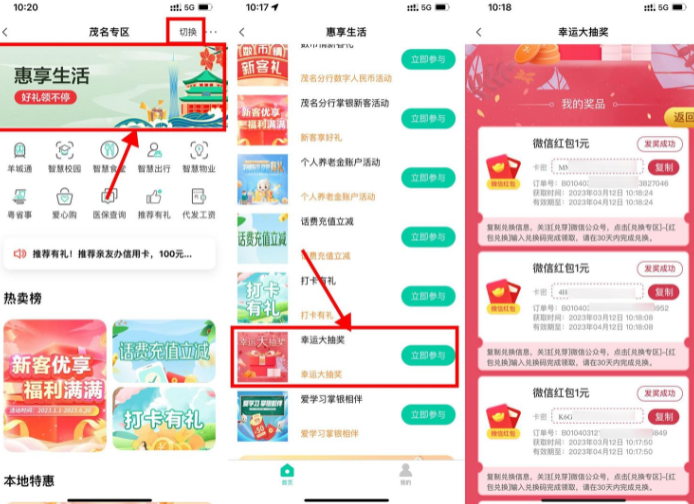 1、农行APP搜索“城市专区”->右上角选择“茂名”->惠享生活->位置再次选择“广东-茂名”