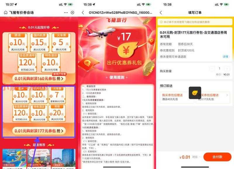 新一期!支付宝APP扫码->选择第二个券包买->其中包含满8减7元火车票券,券有效期7天