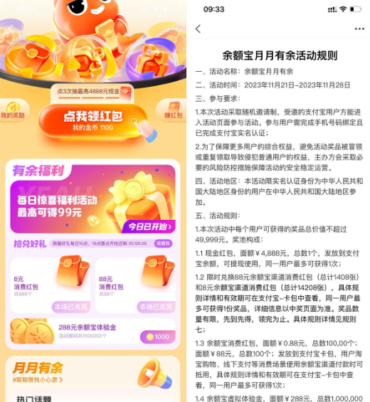 支付宝APP扫码->每次点击会弹出随机金币->集满1000个金币每天10点、16点兑换8或88亓消费红包