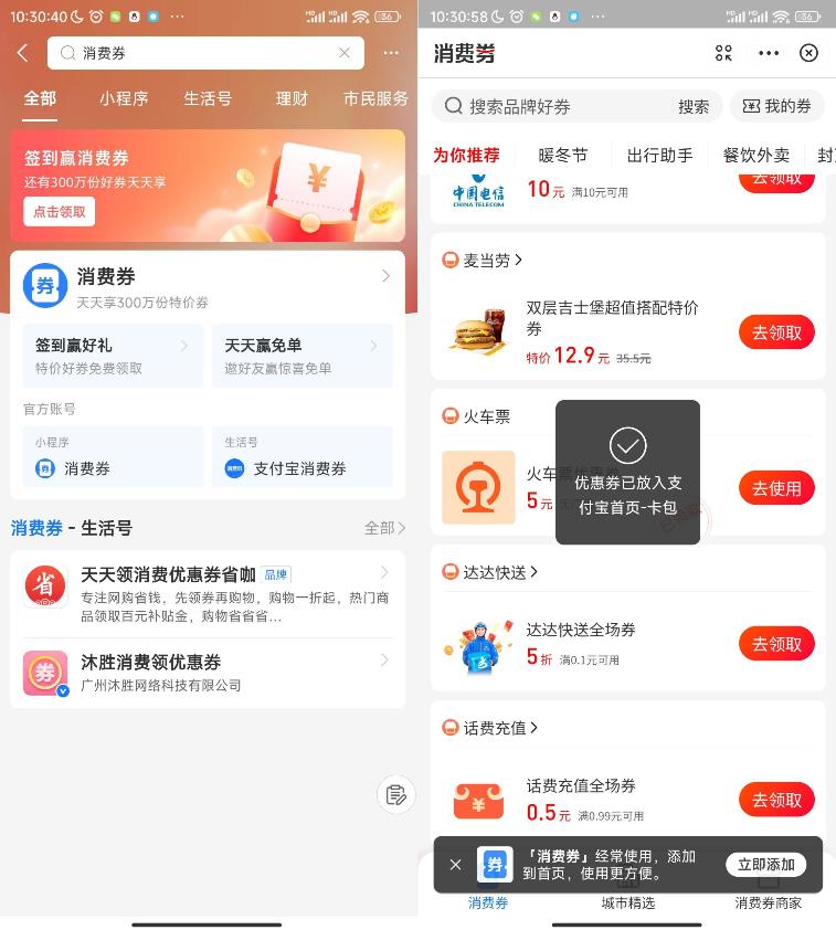 打开支付宝APP搜索“消费券”->横幅进去下拉领取->近期要出行的看看!