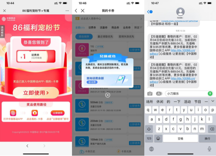 微信打开地址->直接抽1~5元话费或500MB/4GB流量包等