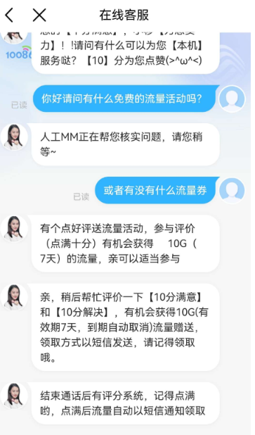 ①活动对象:中国移动活动内容:每个月1元10G流量夜间流量活动说明:可以无限1元办理活动地址:https://dev.coc.10086.cn/coc/web1/nightPackage/?pageId=1595219895114866688&channelId=P00000001433②活动时间:不详活动内容:广东移动(梅州)(其它地方自行测试)活动地址:https://wx.10086.cn/website/businessPlatform/customShopDetail?personalPageId=200010749活动内容:2元10G流量7天活动说明:办理成功——退订——发00000——10086——TD~——本人测试不扣费——本人测试只能办理一次——不扣费记录截图如下!③免费12个1G流量自动取消https://h.app.coc.10086.cn/activity/transit/transferDownload.html?targetUrl=https%3A%2F%2Fh.app.coc.10086.cn%2Factivity%2FtransferXcx%2Findex.html%3Fplatform%3Dcmcc%26path%3DsubPackage%252FshopDetail%252FshopDetail%26appId%3D8261535206163396④直接人工客服有没有什么免费流量活动⑤人工客服0元10G7天