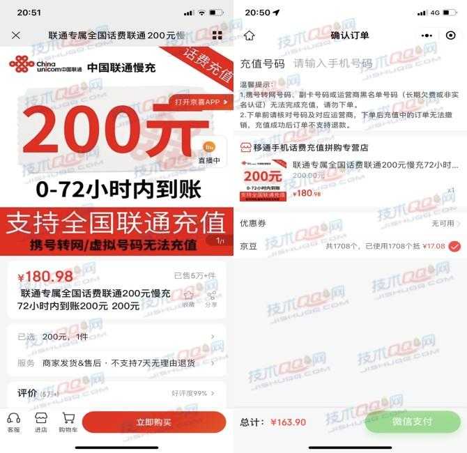 本文可以180元充值200元话费,算下来也就是9折话费,支持全国联通手机号码下单还可以使用京豆抵现,话费是72小时内到账,携号转网/虚拟号码无法充值 微信扫码或复制链接打开:https://u.jd.com/FCTxKPz立即购买,输入要充值的手机号码,可以使用京豆抵现