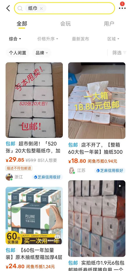 接下来,就是变现的过程了你可以选择在线上销售这些纸巾,比如在二手平台上进行销售,比如闲鱼、小红书等平台。如果你想要增加销售量,可以选择以拼团的形式销售,吸引更多顾客参与。另外,你还可以在社交媒体上进行推广,比如微信朋友圈、抖音、快手等平台,这样可以快速扩大你的销售渠道。