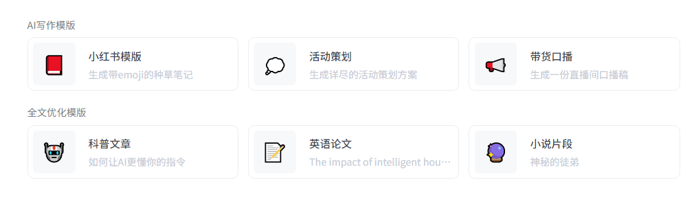 功能如上图所示,完全免费,快来尝试火山写作,一起体验自动写作的神奇能力吧!