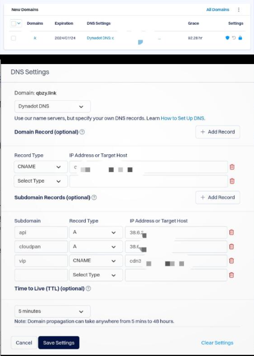 注:解析时点击最中间的蓝色字体即可,选项跟图中一样的就行,第一类里的是顶级域名解析,第二类里是添加二级域名[滑稽][玫瑰]