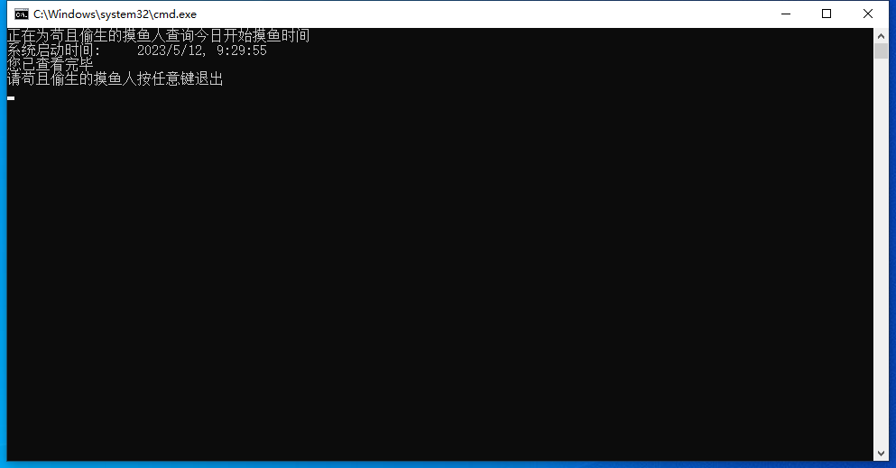 echo 正在为苟且偷生的摸鱼人查询今日开始摸鱼时间