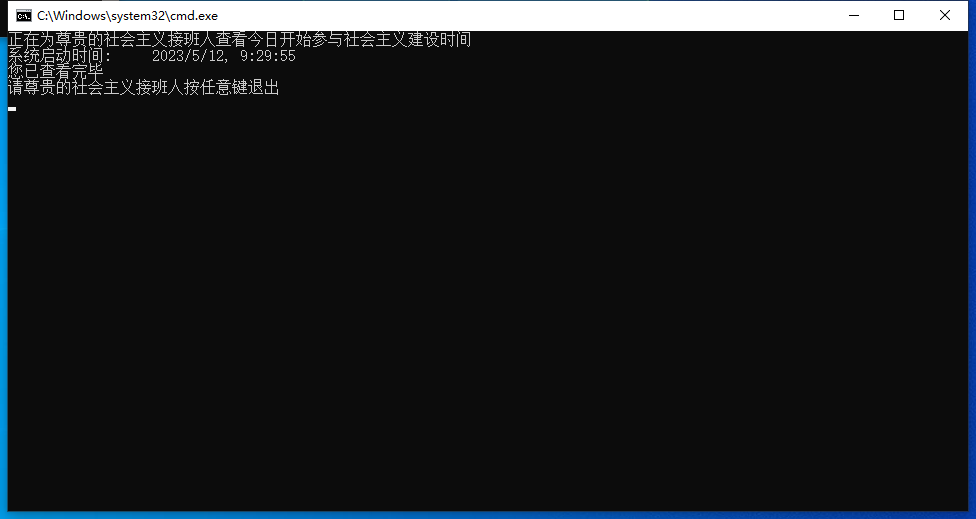 echo 正在为尊贵的社会主义接班人查看今日开始参与社会主义建设时间