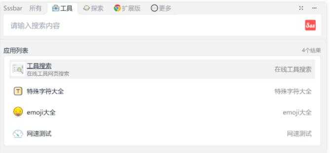 PDF 格式转换等等,只要你给 sssbar 一个关键词,它都能帮你快速找到对应的在线工具。