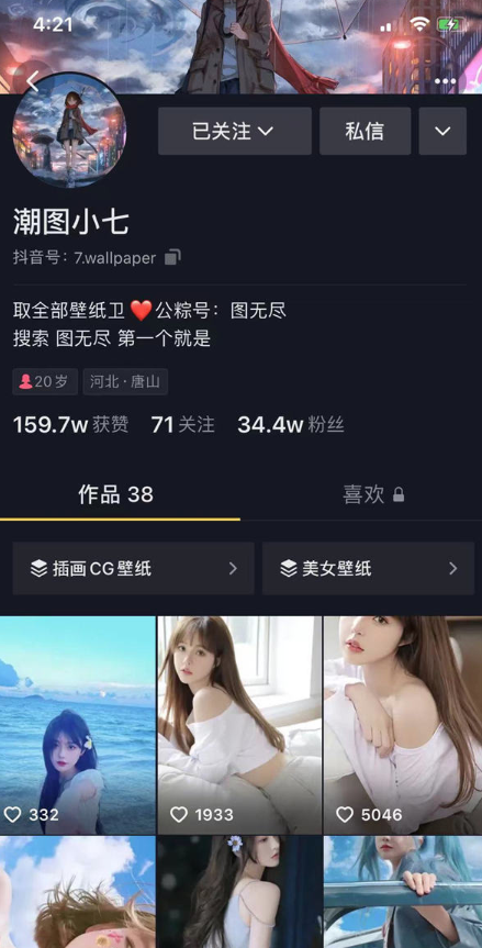 一.壁纸种类选择红叔自己做的是美女壁纸,做这个起初也是因为要帮外卖公众号导流,每天也没花心思做,但凡花点心思也有个几十万公众号粉了。现在主流的有这些方向,我给你们截图,你们可以去关注,再以此为基础去发散思维。