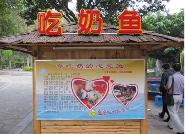 啥?鱼还要吃奶?我惊讶到了,于是,问了下旁边的管理员,他们在干什么,管理员说:喂吃奶鱼啊!30块钱一位。
