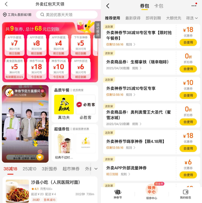 美团外卖神券节领38-18元券