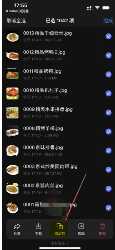 找到转存的文件夹,进去后一直下拉到底部,直到显示全部文件为止(能多选/全选1000张图片证明已拉到底部,否则你还得拉(不是shi))