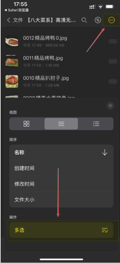 点击右上角的“三个点的选择”图标,看底部操作“多选”