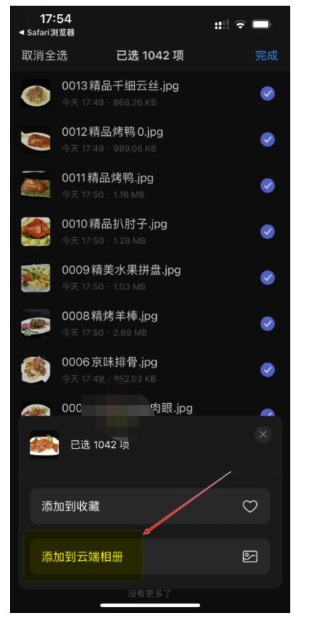点击下方的“添加到”图标,再点击“添加到云端相册”,任意选择一种添加方式。