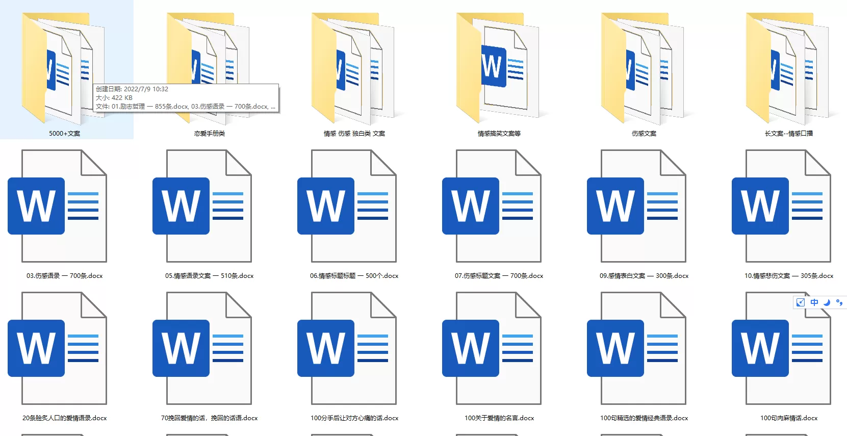 素材全中文分类,里面包含了自媒体剪辑应用的各个场景文案,如心灵鸡汤、商业思维、名人名言、情感语录、剧本文案等 已移除全部广告!
