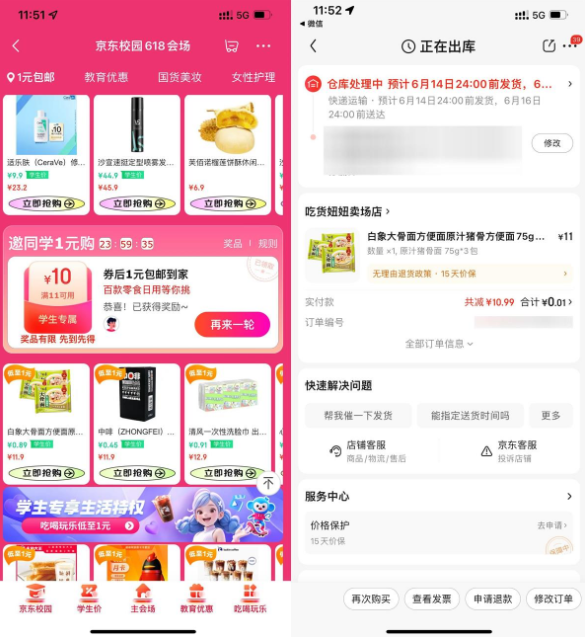打开地址跳转到京东APP->邀请1人助力领10元券,有很多1亓包邮的实物