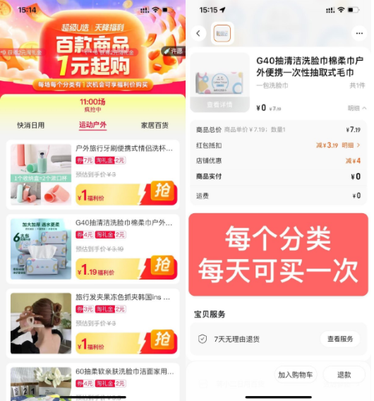 点商品“抢”字,领取后叠加“优惠券+淘礼金”下单即可,最低0元撸实物包邮!