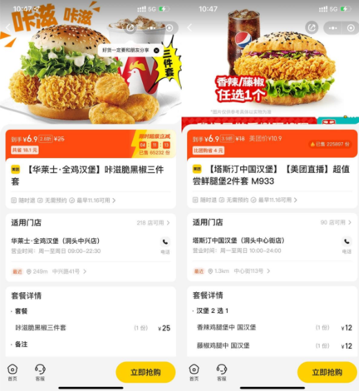 微信打开地址->6.9亓买华莱士3件套或塔斯汀2件套,全国门店都可以用,到店核销即可使用,刚好要吃的可以看看