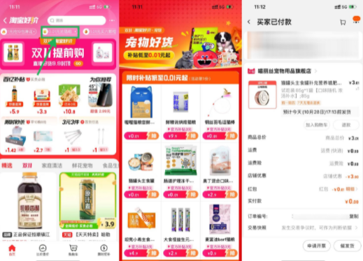 淘宝打开活动->顶部“0.01元抢猫粮”->任选1款补贴3亓后最低0.01元到手