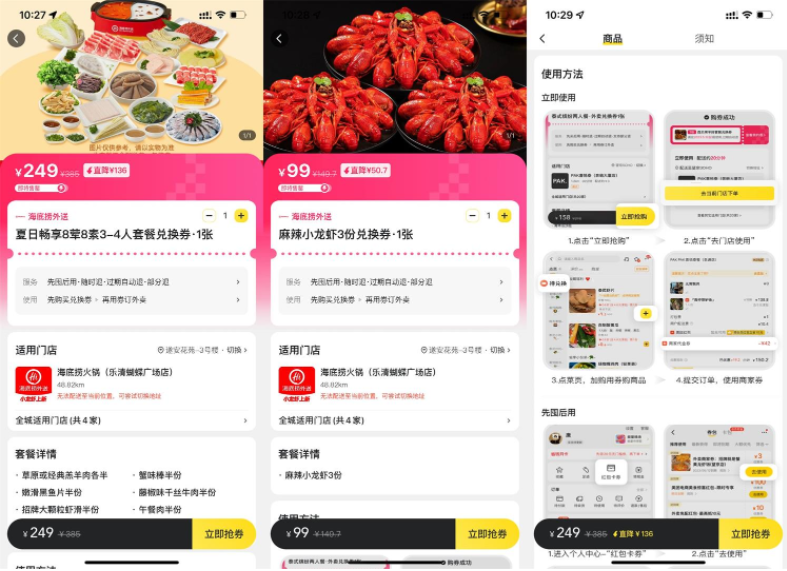 美团扫码或打开链接,249元买8荤8素套餐/99元买小龙虾3份,全是海底捞外送的,大夏天在家吃美滋滋!