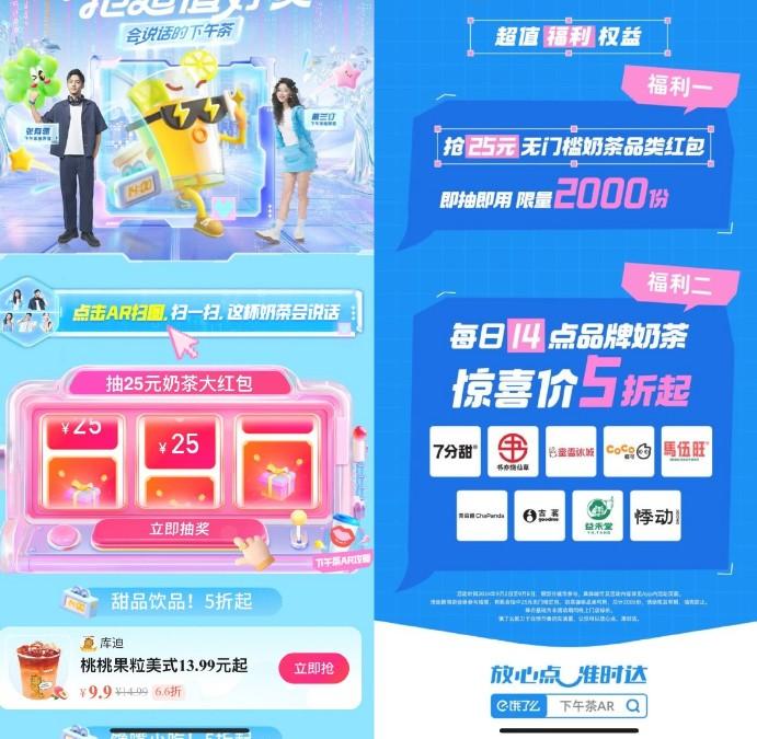 饿了么APP搜索“下午茶AR”->直接抽2000份25亓无门槛奶茶券