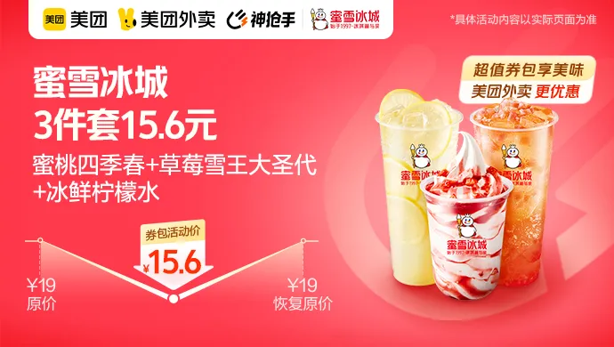 蜜雪冰城经典甜蜜套餐-3杯15.6元
