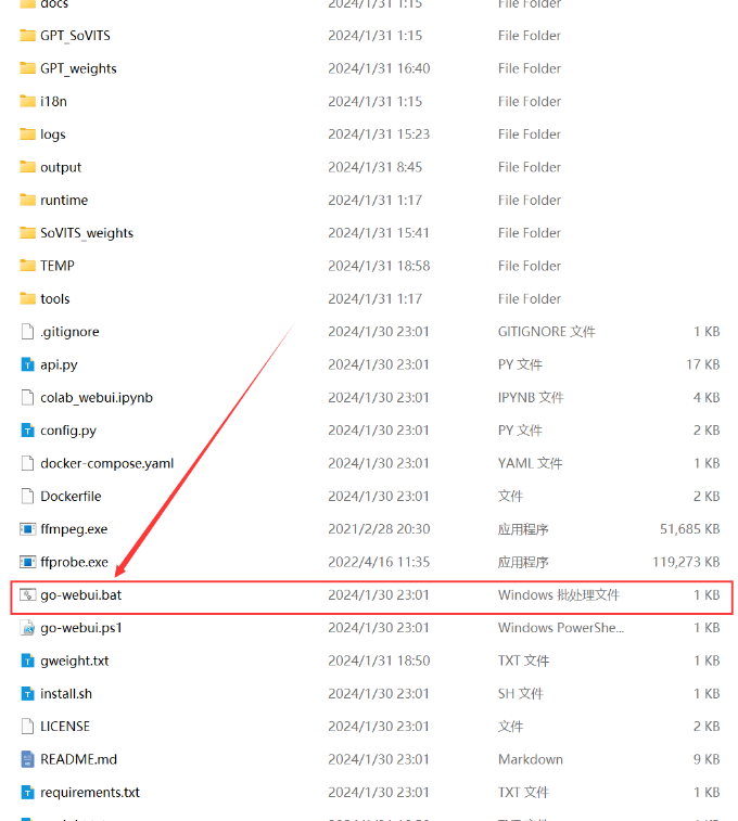 二、解压完成之后运行"go-webui.bat"文件,直接双击就行,别右键用管理员身份启动,此时会出现一个黑色的控制台窗口,一定不要关闭它,关闭它程序就结束运行了