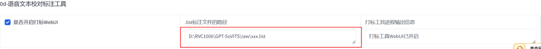 0d. 1.关键来了,看好这里,这个步骤是打标,打标一定要打好,我们先在红框里面输入.list文件地址,注意是这个.list文件的地址,不是文件夹地址!然后点击“是否开启打标WebUI”前面的框框,等待一下会弹出来一个界面