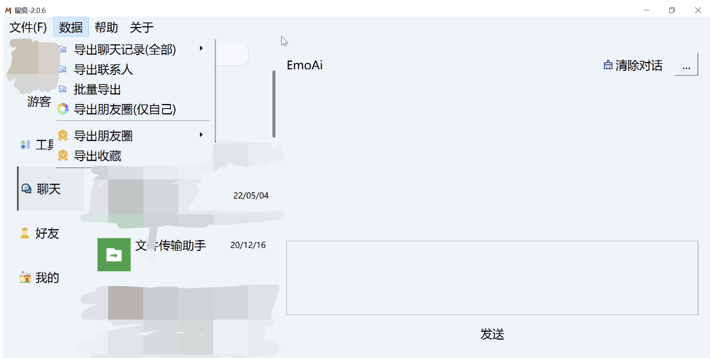 登录要导出数据的微信(不支持微信多开,不支持部分老版本微信);