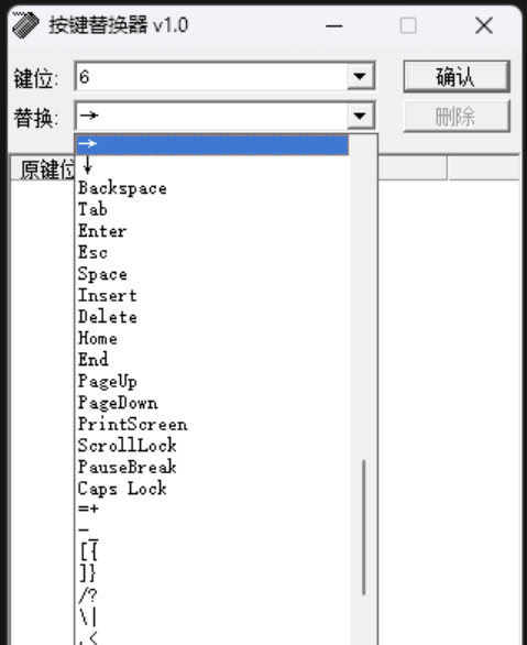 使用方法:解压文件后,打开文件夹里的KeyWizard.exe,两个下拉里选择要互换的键位,点确定即可