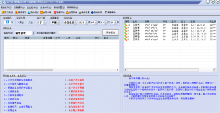 3.提供10余种方法供起名选择,比如指定取名,谐音取名,生日取名。