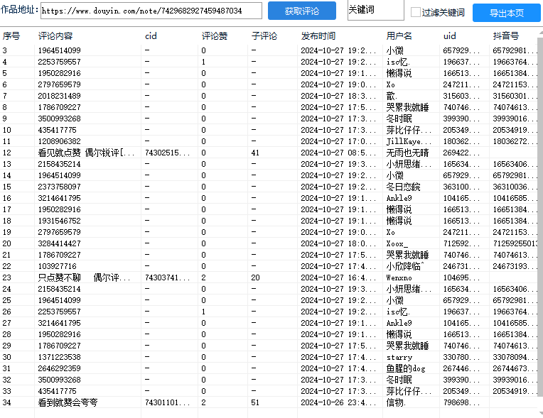 抖音评论采集,无需登录即可采集,一键导出,带过滤功能!
