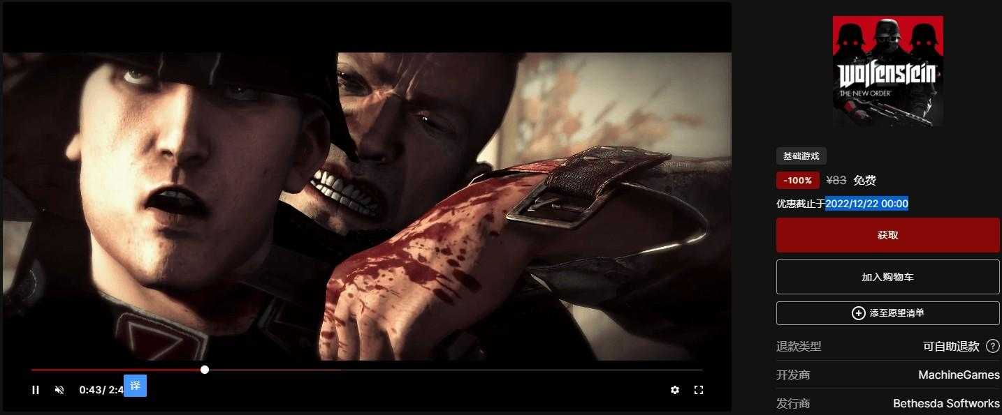 领取地址:https://store.epicgames.com/zh-CN/p/wolfenstein-the-new-order