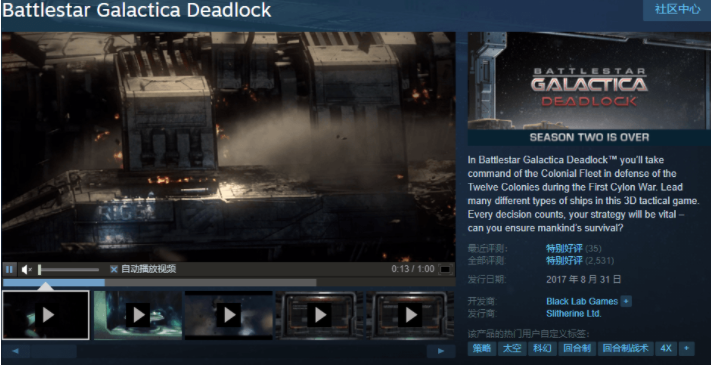 领取地址:https://store.steampowered.com/app/544610/Battlestar_Galactica_Deadlock/