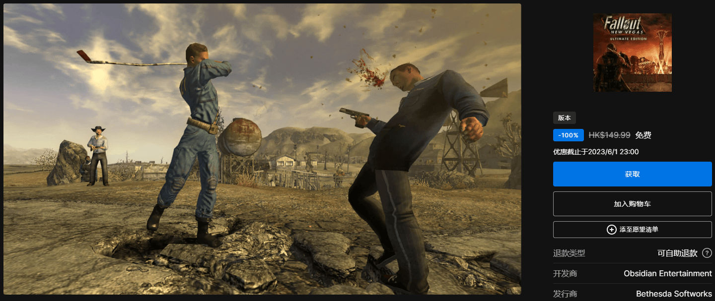 领取地址:https://store.epicgames.com/zh-CN/p/fallout-new-vegas--ultimate-edition