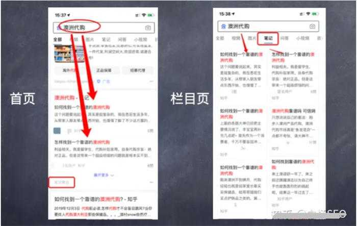 你可以简单理解,因为笔记这个TAG下,小红书笔记内容更优质,所以百度优先展示小红书的笔记了。何况小红书上发布内容就叫笔记,知乎里发布叫文章,前者更贴合。这个变化,对我们做SEO搜索流量有哪些启发呢?继续往下。