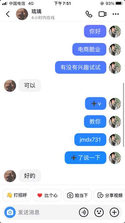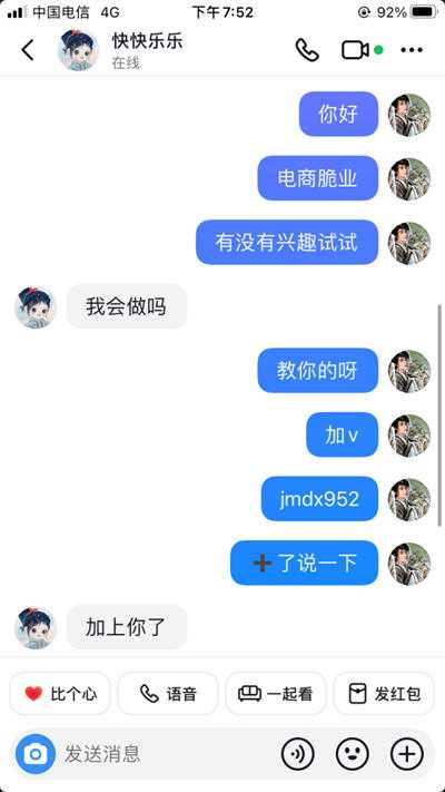 人员和账号及设备问题都搞定之后,剩下就是话术问题了,直接提供现成的话术给员工去操作就行了(话术一定要每隔一段时间优化迭代,不断提升转化率),直接私信相同领域博主的评论区最新评论的粉丝,比如对方求助一些情感的问题,那么这个粉丝就是相对精准的,直接私信吸引对方加到微信来。交给销售去转化成交就行了。