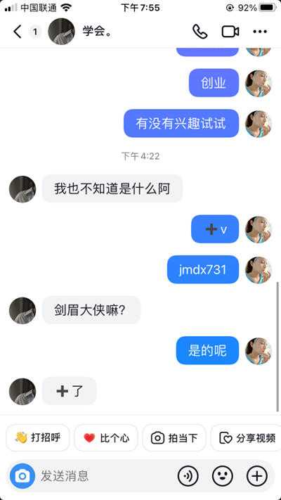 02都知道,我剑眉大侠也是搞网创粉的,其实抖音私信精准引流也非常适合我的业务,我批量关注了一些讲创业的博主以及搜索创业话题的视频,批量找到了很多最新评论求助创业问题以及找项目的粉丝,我用3个账号测试了半天时间,成功引流30多个精准粉丝......