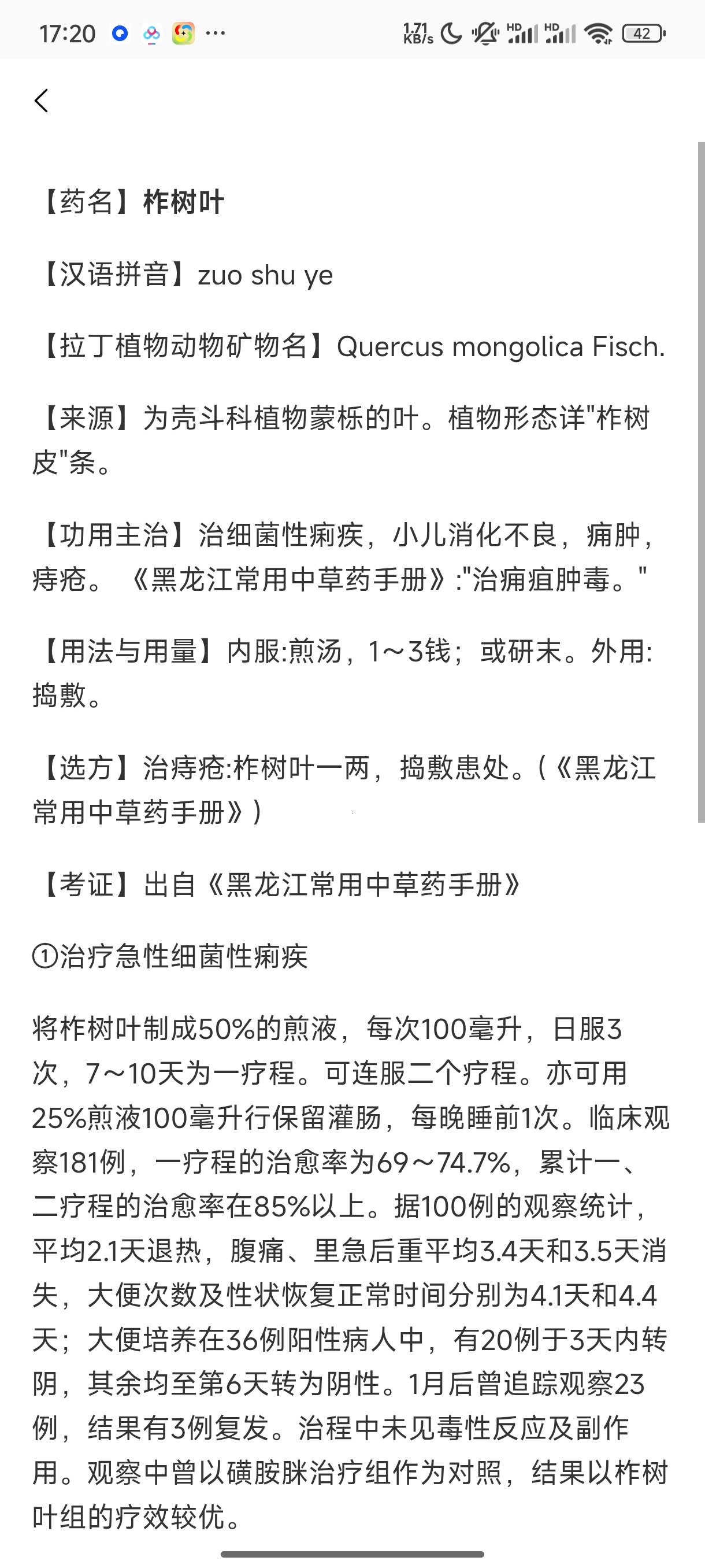 支持“柞树叶”“茯苓”等冷门/常用药材的精准查询,数据参考《黑龙江常用中草药手册》等权威典籍。